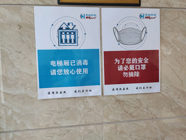 電梯里貼上了暖心的抽紙,門把手也勤消毒做到重點防范。