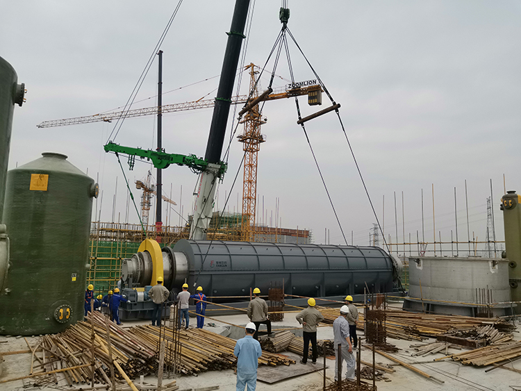 23日上午7點(diǎn),隨著吊裝指揮的一聲令下,焙燒爐開(kāi)始起吊。在現(xiàn)場(chǎng)所有建設(shè)者的注視下,500噸汽車吊平穩(wěn)提升,至8點(diǎn)37分,焙燒爐順利吊至裂化劑廠房6米層樓板上。