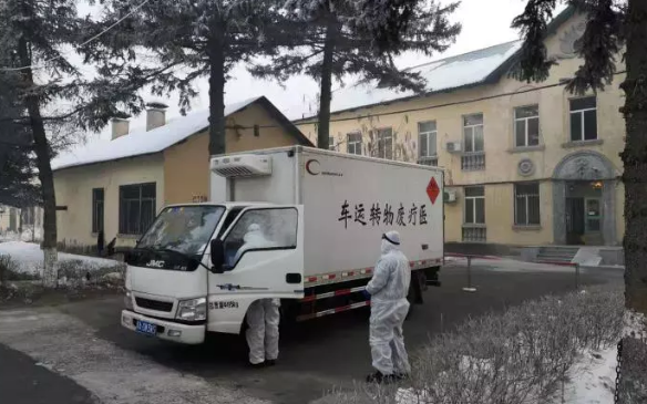 在黑龍江省傳染病防治院,醫療廢物要照平時更加及時的轉運。此時,醫療廢物轉運車正停在這里,對醫療廢物進行清運。黑龍江省傳染病防治院副院長劉玉琴介紹,截至1月30號24時,這里共收治兩例確診病例,疑似病例10多例。相對來說,這些患者病情都比較平穩。按照國家和黑龍江省疾控部門的要求,黑龍江省傳染病防治院嚴格執行醫療廢物處置標準,使用黃色收集袋封存醫療廢物,并噴灑消毒液,并與轉運單位隨時溝通,及時轉運。劉玉琴說:“每天早晨七點半到八點半會有專車過來,定時、定點、定人轉接。根據患者量產生垃圾不同,下午可能要臨時再過來一次,集中再收走。”